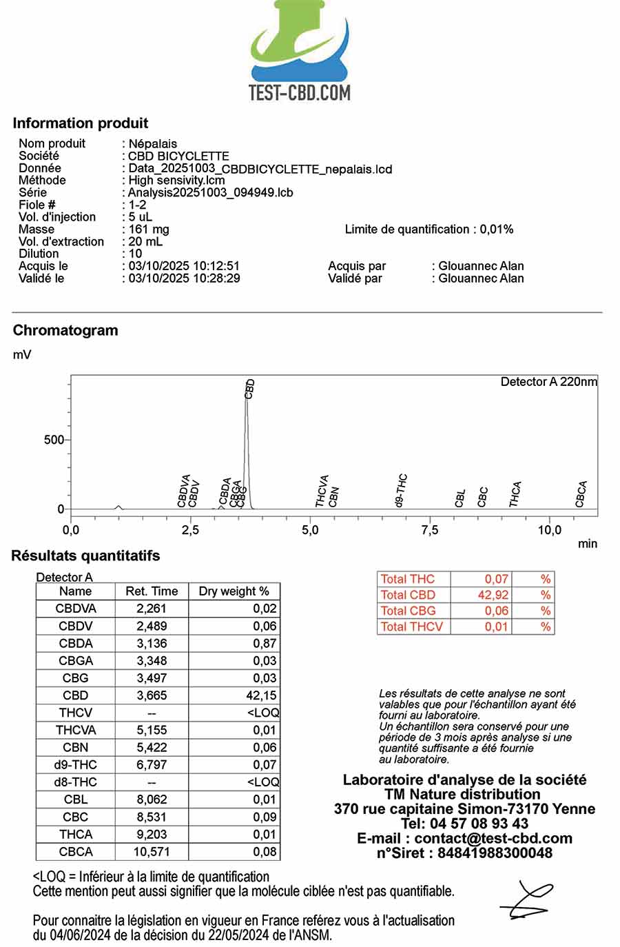 Comme vous pourrez le voir sur l'analyse, le lot en vente actuellement est à 0.07% de THC. Nous avons effectué des tests pour vérifier que ce taux n'entraine pas de résultats positifs aux tests salivaires. TOUS les test ont montrés des tests salivaires NEGATIFS !